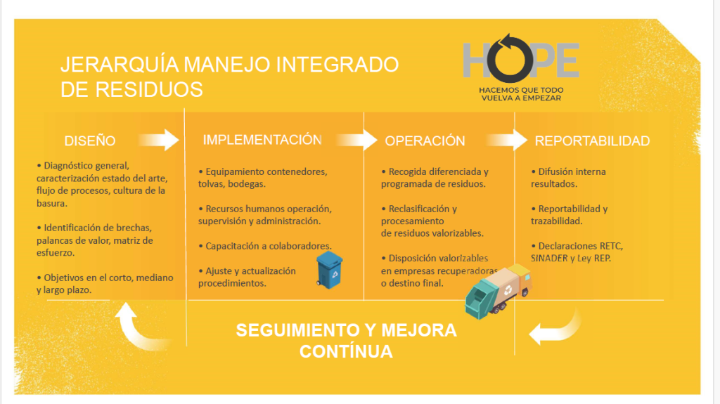 HOPE nace en octubre del 2013 como un servicio orientado a materializar el esfuerzo de las personas, comunidades y empresas la gestión responsable de residuos y la economía circular.
